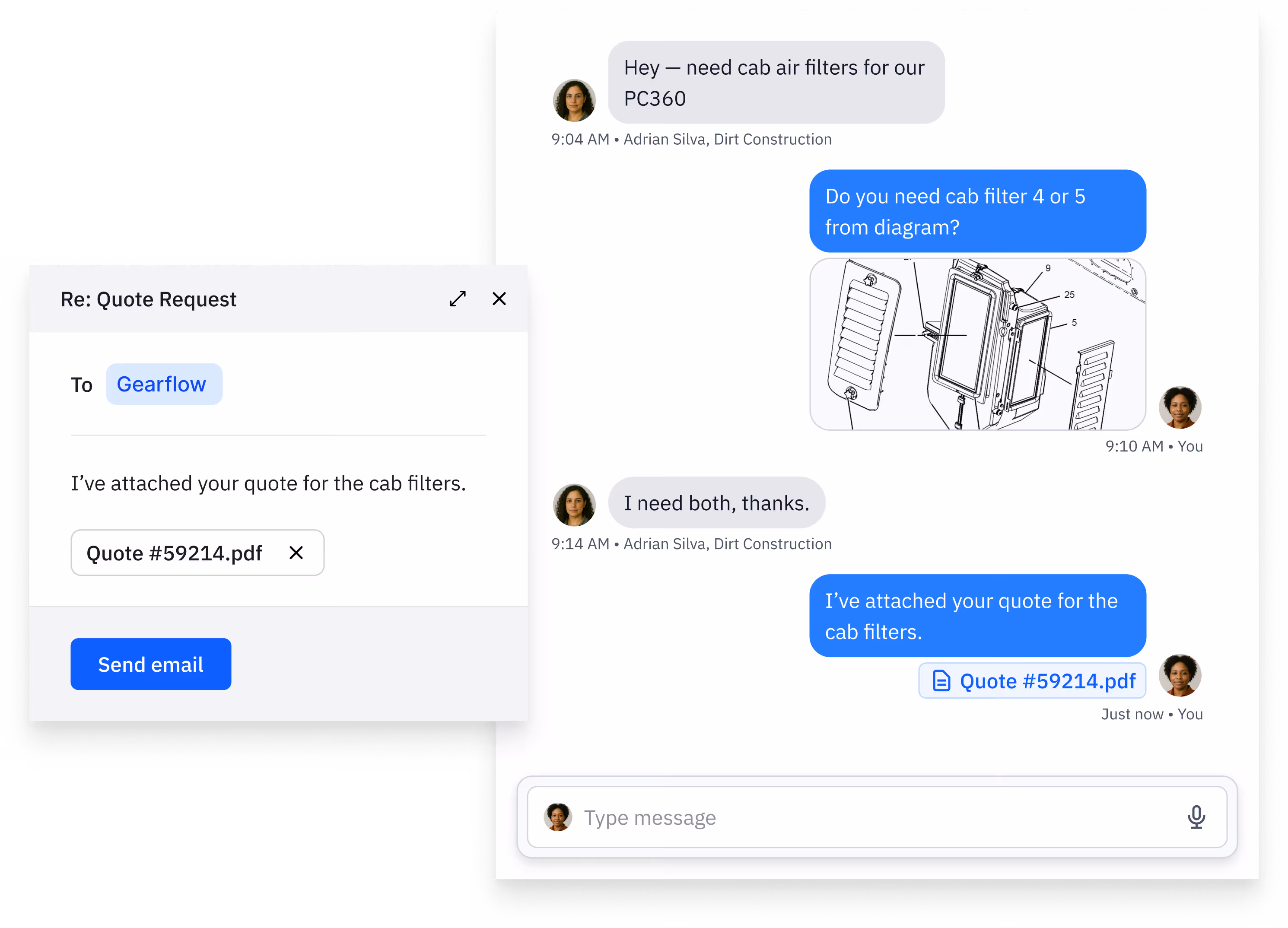 Get customer requests via email and text the moment they're sent. Respond directly without logging in. Stay in the loop with automatic updates on quote status, PO approvals, and delivery confirmations.